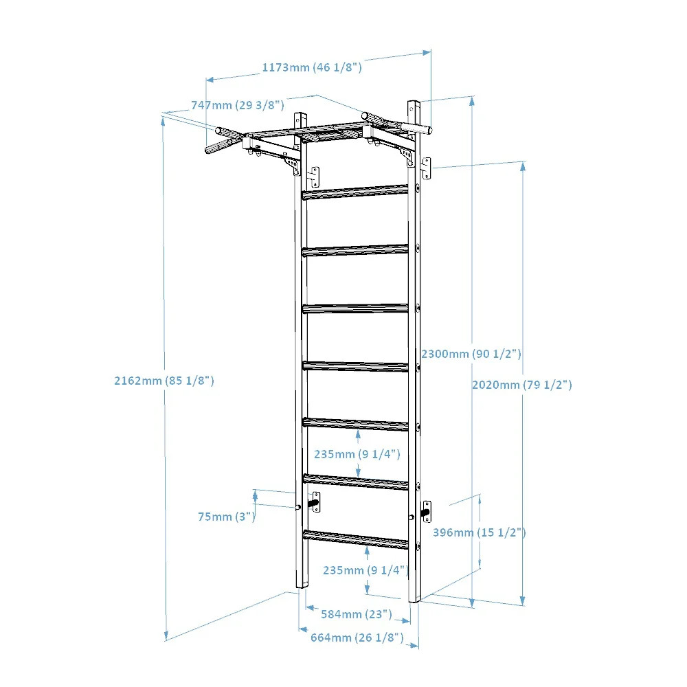 A BenchK bordásfal modell tökéletesen illeszkedik a belső tér skandináv stílusához. A függőleges profilok (50 mm x 40 mm) kiváló minőségű fémből készülnek, amelyeket Komaxit festékkel festettek, amely rendkívül ellenáll a sérüléseknek. A válaszfalak bükkfából - ovális alakúak, a válaszfalak felületét minőségi olajjal olajozzák, mindez kényelmessé teszi a bordásfalak használatát. A maximális terhelési súly 150 kg. Beépítése nagyon egyszerű, és kialakítását úgy alakították ki, hogy megfeleljen a belsőépítészet jelenlegi trendjeinek, anélkül, hogy a lakás teljes belső terét megzavarná. A rögzített csavaros húzodzkodó / PB2B hat csúszásgátlóval rendelkezik, amelyek megkönnyítik a gyakorlást. A fogantyúk gyártásának modern technológiája lehetővé tette a termék egységességének elérését. Az egyéb tartók 4 mm vastag fémből készülnek. A fő szerkezet egy 50 x 40 mm-es alakú profilból és egy 27,2 mm-es csőből (falvastagság 2 mm) áll. Minden fém elem porfestékkel van bevonva. A modern hegesztési és lézervágási technológiának köszönhetően feldolgozási pontosságot és tökéletes alakokat kaptunk. A termék megfelel a PN-EN 12346: 2001, PN-EN 913: 2019-03 biztonsági követelményeknek