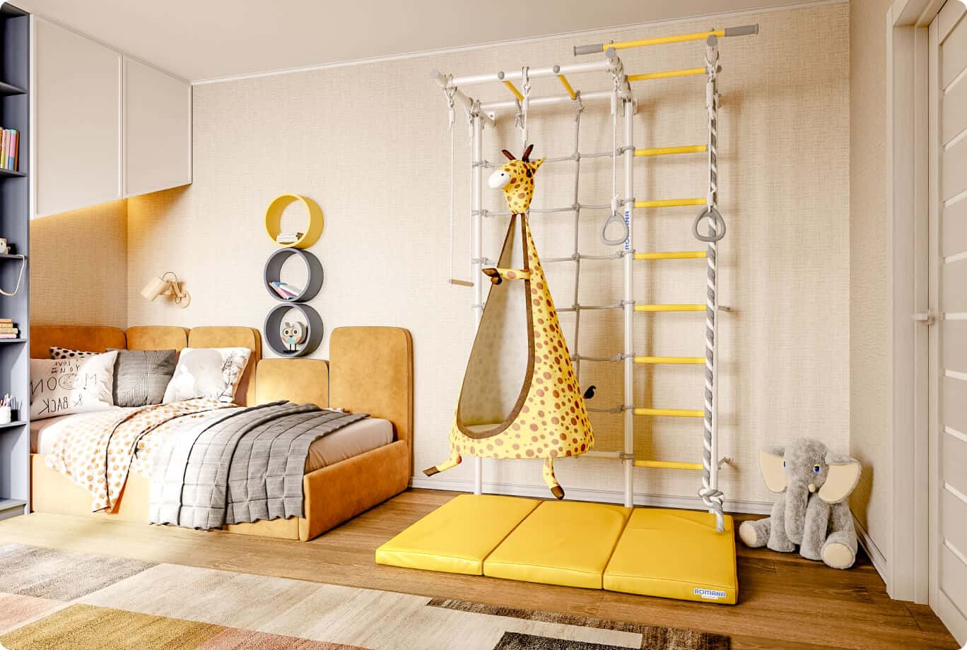 A PLAYDORO KIDDY modell finom pasztell sárga-szürke színben érhető el, amely ideális a gyerekszobába, és tökéletesen illeszkedik a modern enteriőrbe.