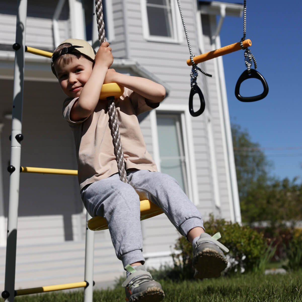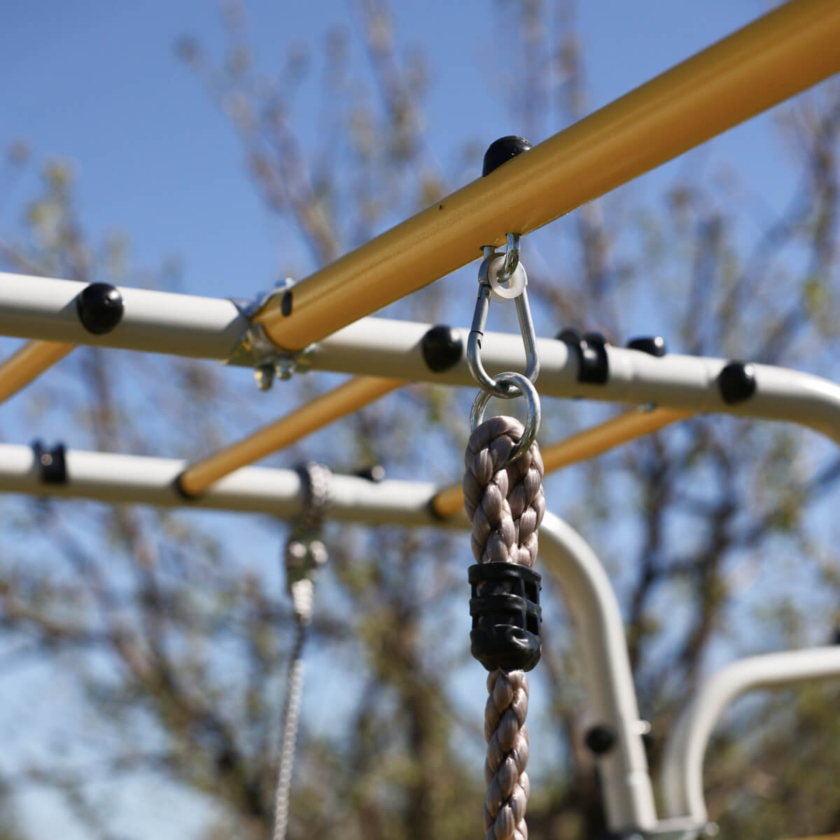 A kötél erős polipropilénből készül, amely ellenáll a kopásnak és a terhelésnek. Minden használt anyag egészségre ártalmatlan és biztonságos gyermekek és felnőttek számára is.