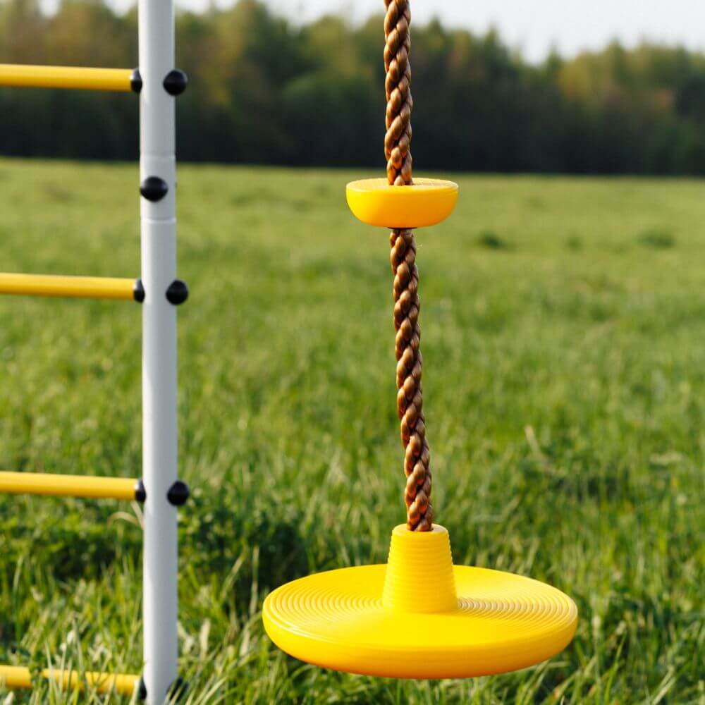 A hinta 3 éves kortól használható gyermekek számára, maximális terhelhetősége 50 kg. A telepítés egyszerű – a hintát a konstrukcióhoz biztonsági karabinerrel lehet rögzíteni. A magasság a alsó korong alatt lévő csomókkal állítható (az eredeti csomókat nem kell kibontani). A talajtól mért minimális magasság 350–400 mm legyen.