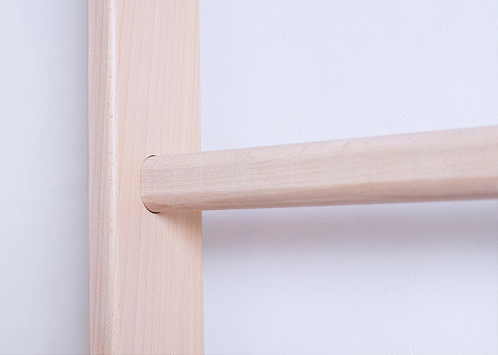 A teljesen fából készült bordásfal pótolhatatlan felszerelés azok számára, akik erősíteni akarják az ínszalagokat és az inakat, ami szükséges azok számára, akik sportolni akarnak és jó fizikai állapotban vannak. Minőségi bükkfából készül, modern berendezéseken, amely biztosítja a sima fafelületet és a bordásfal tökéletesen illeszkedő részeit. A fa fizikai aktivitás során történő védelme érdekében a fa kopását vagy szennyeződését a faelemek speciális olajjal borítják. Ennek a bevonatnak köszönhetően nem csúsznak el a kéz válaszfalain, és mindig tiszták maradnak. A gyermek szülei a bordásfalon is gyakorolhatnak. A testmozgás és a szórakozás a létrán remek ötlet a családdal való eltöltésre. A maximális terhelés 120 kg. A bordásfal 8 partícióval rendelkezik, és ennek köszönhetően nem sok helyet foglal el, és könnyen elfér egy kis gyermekszobában. Elég, ha csak 0,5 m2 helyet szánunk a telepítésre. A fa húzodzkodó állítható, így lehetővé teszi a különböző izomterületek edzését. Minden elem jól elkészült, nincsenek éles élei vagy kiálló részei. A gyártás során olyan természetes anyagokat használnak, amelyek nem okoznak allergiás reakciókat. A bordásfal megfelel a PN-EN 12346: 2001, PN-EN 913: 2019-03 szabványoknak.