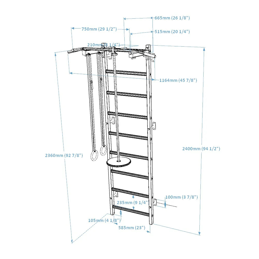 A BenchK 721B+A076 gimnasztikai bordásfal tökéletesen illeszkedik a belső tér skandináv stílusához. A függőleges profilok (50 mm x 40 mm) kiváló minőségű fémből készülnek, amelyeket Komaxit festékkel festettek, amely rendkívül ellenáll a sérüléseknek. A válaszfalak bükkfából - ovális alakúak, a válaszfalak felületét minőségi olajjal olajozzák, mindez kényelmessé teszi a bordásfal használatát. A bordásfal felső részén egy állandóan rögzített húzodzkodó található, amely 6 különböző fogantyúval van ellátva, amelyek lehetővé teszik a karok és a hátizmok erősségének megmunkálását különféle markolatok, például széles fogantyú segítségével. A húzodzkodó hossza 116 cm. A bordásfal olyan gimnasztikai-kiegészítőket tartalmaz, amelyek új kihívásokat és fizikai aktivitást serkentenek. A gyerek szet tartalmaz: egy pár tornagyűrűt, mászókötelet fa hintával. A kiegészítőket legfeljebb 80 kg súlyú emberek használhatják. A tornagyűrűk bükkfa rétegelt lemezből készülnek, és fekete övre vannak akasztva. Az övek csattal vannak felszerelve, amely lehetővé teszi hosszúságuk gyors beállítását, valamint könnyű szétszerelést. A csat mellett tépőzár található, amelyben visszatekerheti az öv feleslegét. A 100% -ban természetes pamutból készült kötelet kézzel kötik össze a húzodzkodó tetején, és rögzítik az aljához. A kötelet mászáshoz vagy hintához lehet használni. A bordásfal olyan emberek számára hozták létre, akik otthonuk kényelmében szeretnének az alakjukon dolgozni. A gyakorlatokat végző személyek maximális súlya legfeljebb 150 kg lehet. A termék megfelel a PN-EN 12346: 2001, PN-EN 913: 2019-03 biztonsági követelményeknek