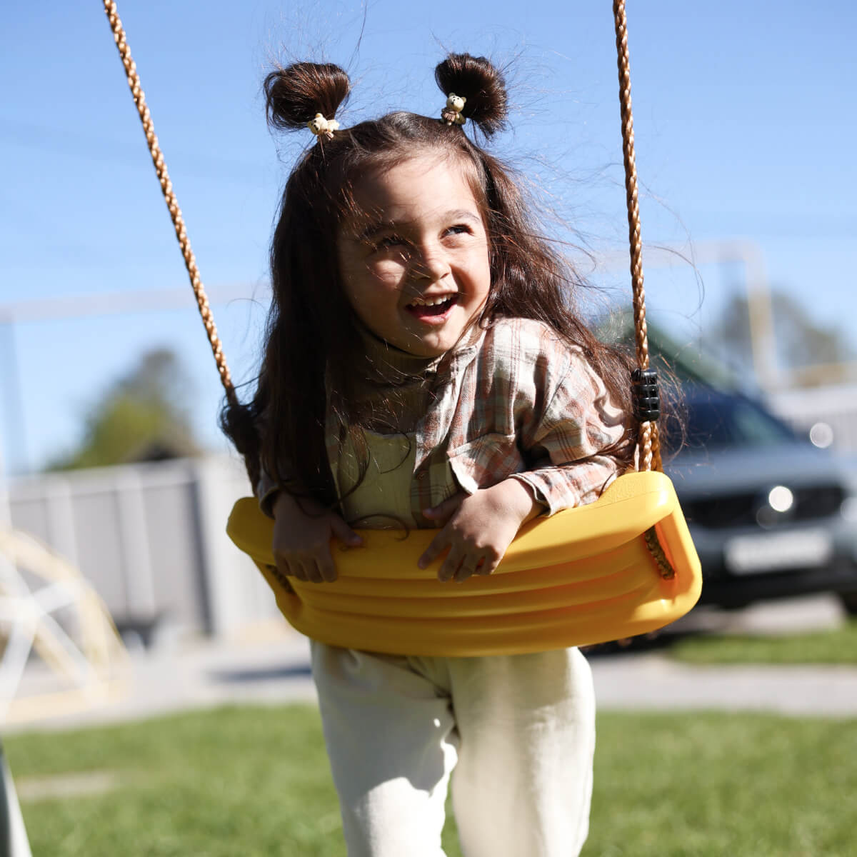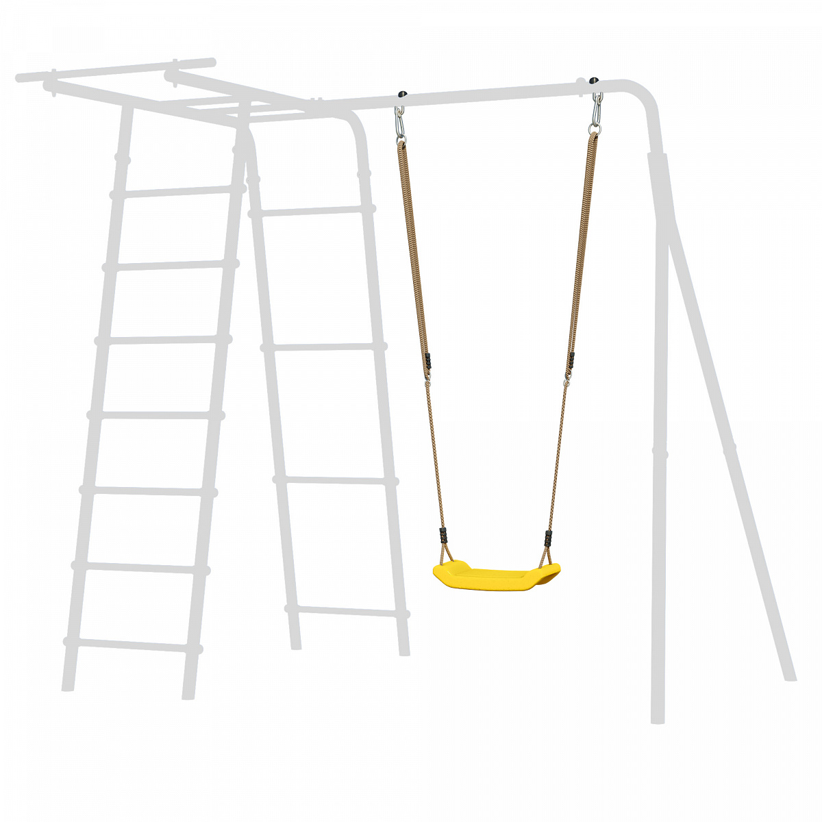 A hinta magas szilárdságú műanyagból készült, ellenáll a mindennapos kopásnak és az időjárás hatásainak. Alacsony súlyának köszönhetően könnyen szállítható, tárolható és szerelhető. Az erős, 10 mm átmérőjű polipropilén kötél magasságban állítható, akár 202 cm-ig, így a hintát különböző életkorú gyermekekhez lehet igazítani.