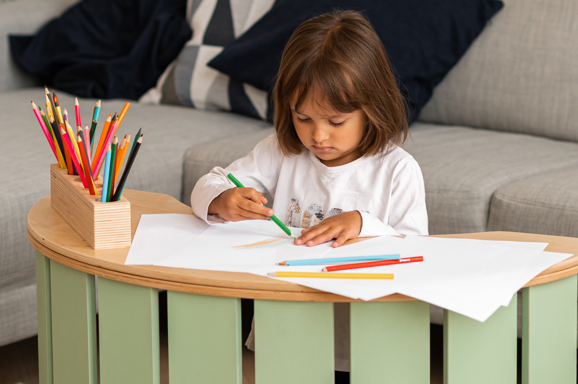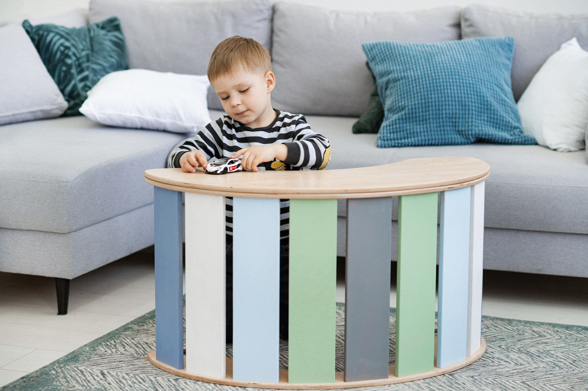 A hintaszék kivágásában belehelyezi a deszkát, és így asztalt készíthet a gyerekeiknek.